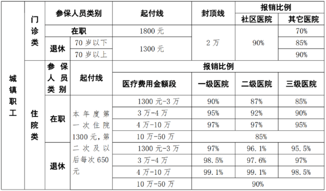 城镇职工医保可选定点医院更多,报销比例也高,通常在70%-90%,报销额度上限是在20-40万左右;