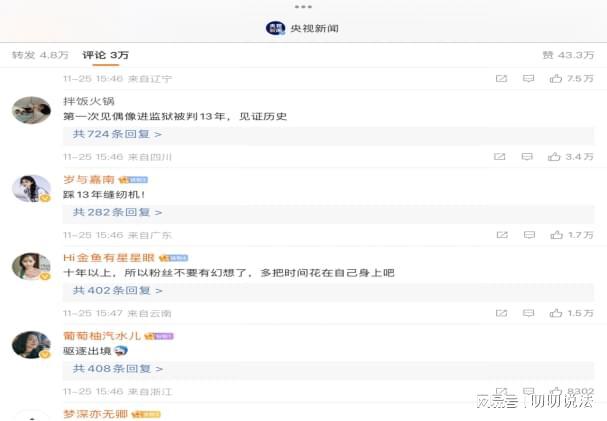 网友纷纷表示,吴亦凡这辈子算是毁了,也有网友留言说:他出道还没13年,活该!天网恢恢,疏而不漏!即使是有权有势的大明星,犯了错依然要接受处罚!吴亦凡最终因强奸罪、聚众淫乱罪获刑13年,可谓大快人心!
