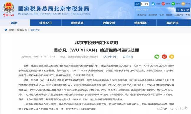 关于偷税逃税问题,有网友问了,吴亦凡不是外国人吗?虽然吴亦凡是加拿大国籍,但2019年和2020年在中国境内停留时间均超过183天,按照《中华人民共和国个人所得税法》规定,属于中国税收居民个人,应就其来自中国境内外所得依法缴纳个人所得税。
