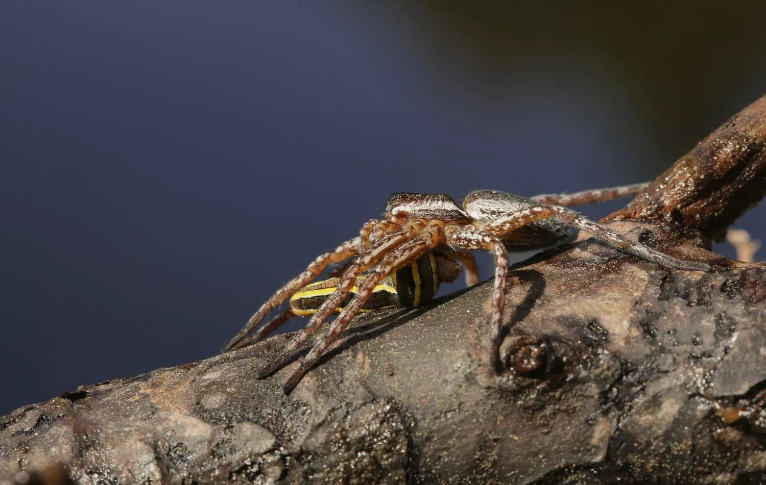 植狡蛛是英国最大最稀有的蜘蛛之一。这种蜘蛛有0.8英寸长,在沼泽中安家。它们不织网,而是在开阔的水面上捕猎——利用树叶和植物茎干作为临时观察点,然后在水面张力下奔跑攻击。植狡蛛只在中欧和英国的三个地区发现,是濒危物种。它们于1956年被发现,由于为它们提供栖息地的湿地数量减少,它们正处于危险之中。