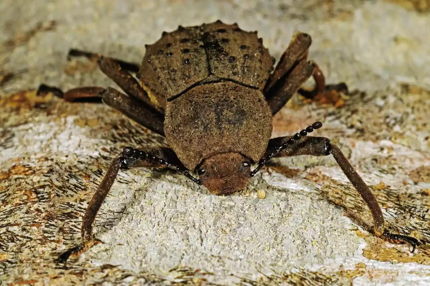 这些夜间活动的不会飞的甲虫住在树上和倒下的木头上,只出来觅食。