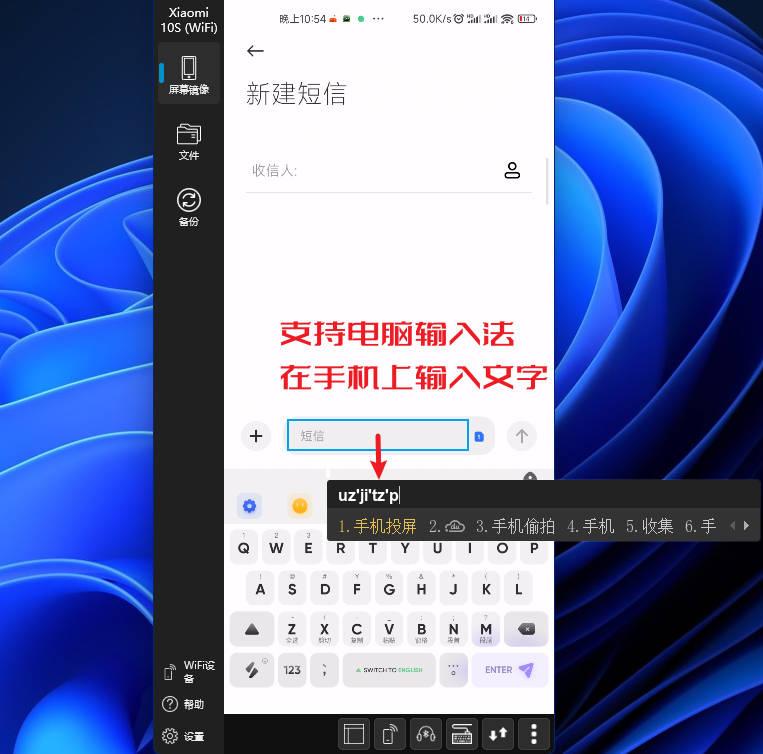 相比于其他同类软件,功能全面的它还有一大优势就是支持在电脑键盘上打字到手机,不需要你用鼠标点击手机输入法来输入文字。