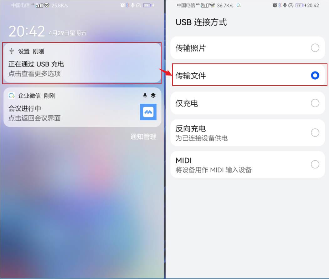 通过数据线把手机和电脑连接,此时屏幕会弹出是否允许USB调试,勾选始终允许并确定,(注意:部分手机如荣耀,可能需要把usb连接方式设置为传输文件)
