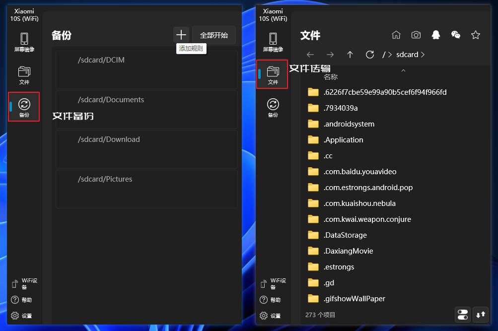 此外,这个投屏软件更是一个文件传输助手,还是手机文件备份助手,轻松实现手机电脑文件互传以及手机文件备份到电脑;