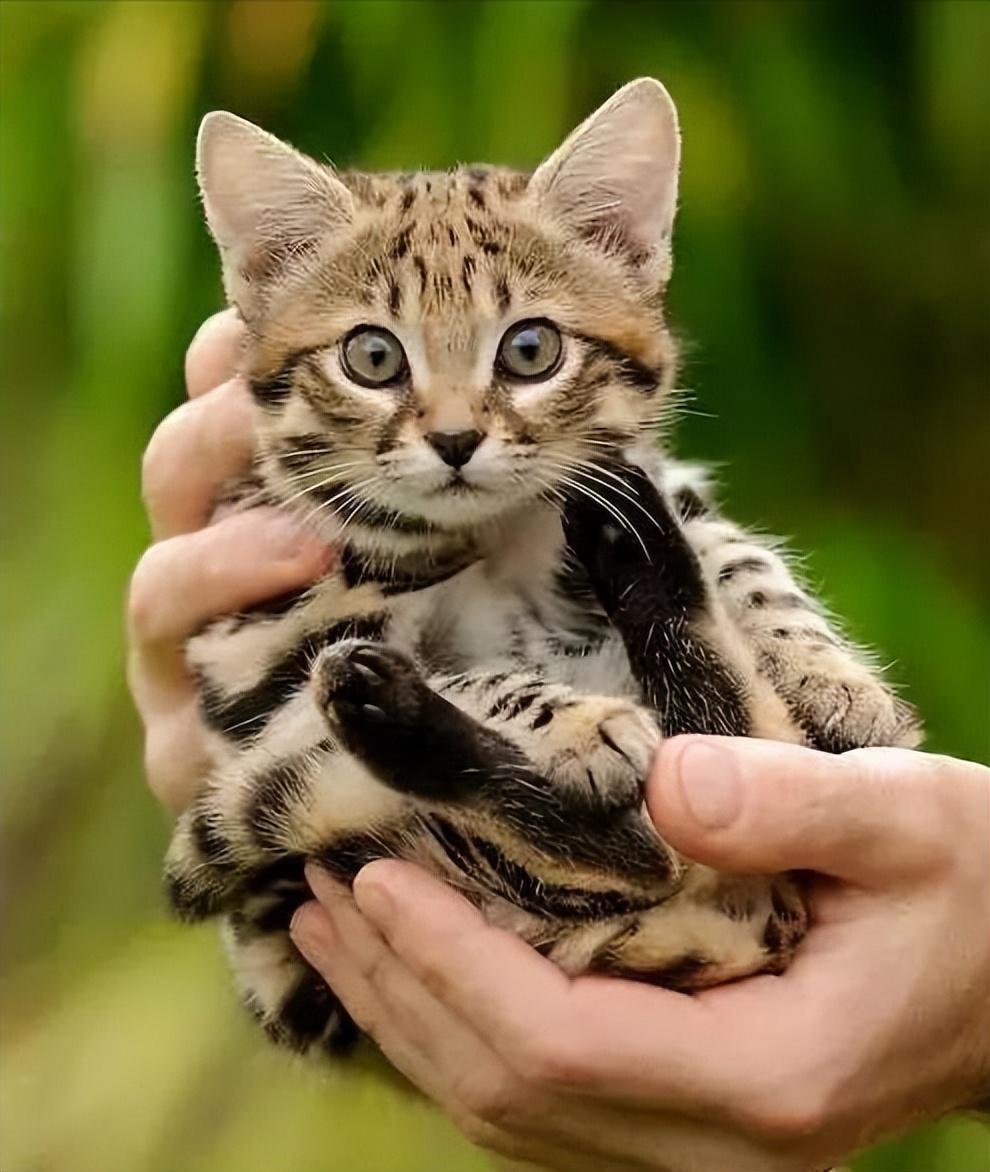因为灰色的皮毛上有锈色的斑点得“锈斑豹猫”一名。属于野生猫科动物,但是体型非常小。雌性的锈斑豹猫体重超不过1kg ,因此也被人们称为全世界最细小的野猫。锈斑豹猫只在夜间活动,白天大多都在睡觉。